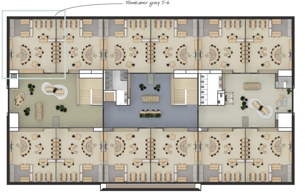 - Grote ruime schoolwoonkamers voor iedere stamgroep van 70m2.
